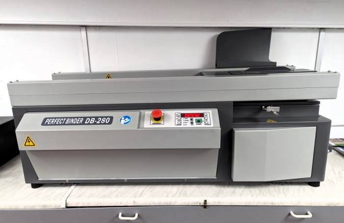 The user-friendly DB-280 brings professional perfect binding to your desktop. Producing up to 200 books per hour, the automated DB-280 is ideal for short-run and on-demand printing applications.