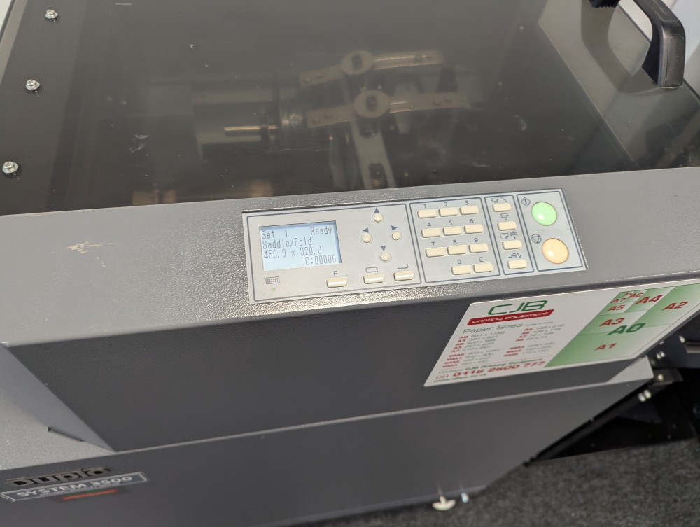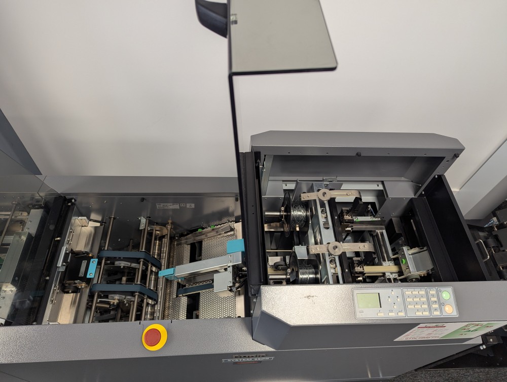 The 350 Booklet System is ideal for high production, high quality booklet making. The Deluxe stitching heads reduce the cost per booklet considerably due to the yield of stitches per wire spool, around 50,000 booklets per spool is achievable.