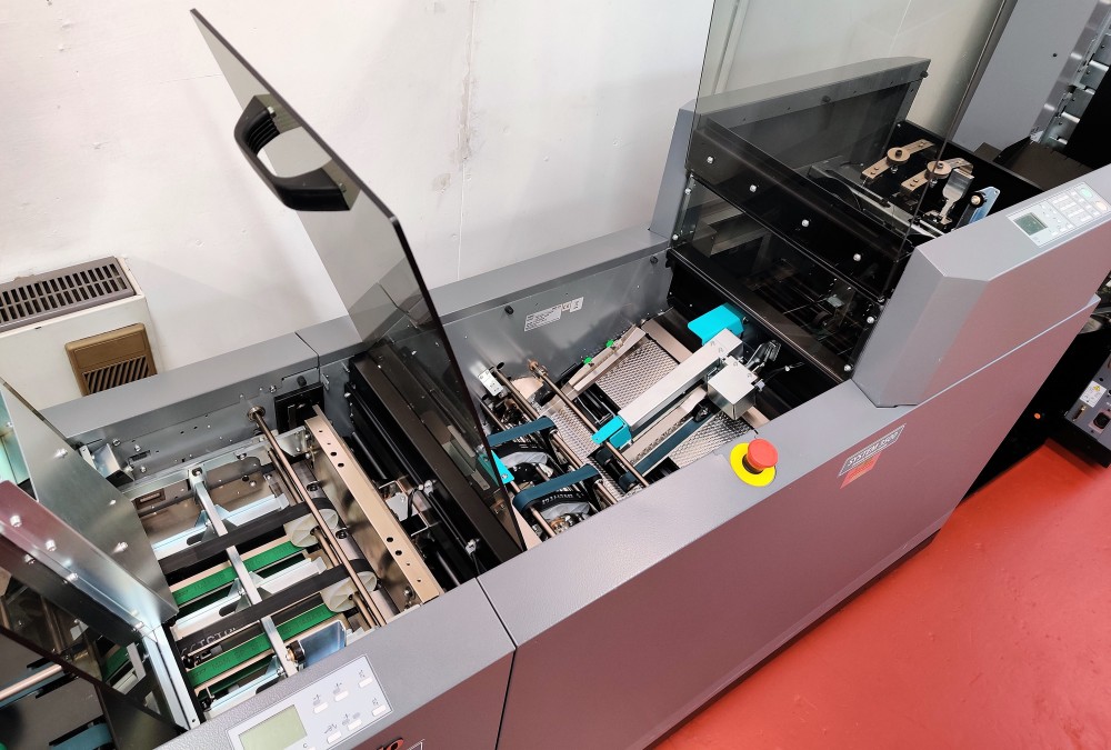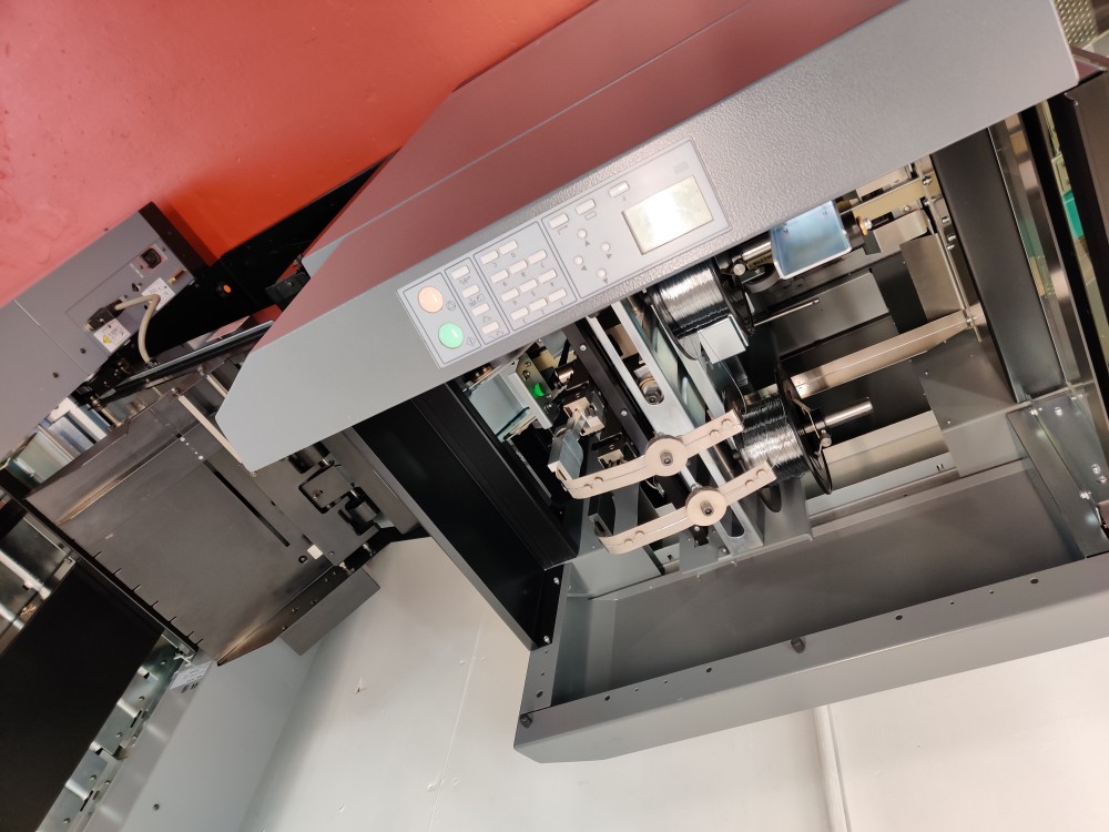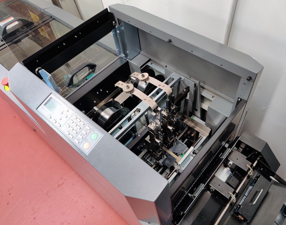 The 350 Booklet System is ideal for high production, high quality booklet making. The Deluxe stitching heads reduce the cost per booklet considerably due to the yield of stitches per wire spool, around 50,000 booklets per spool is achievable.
