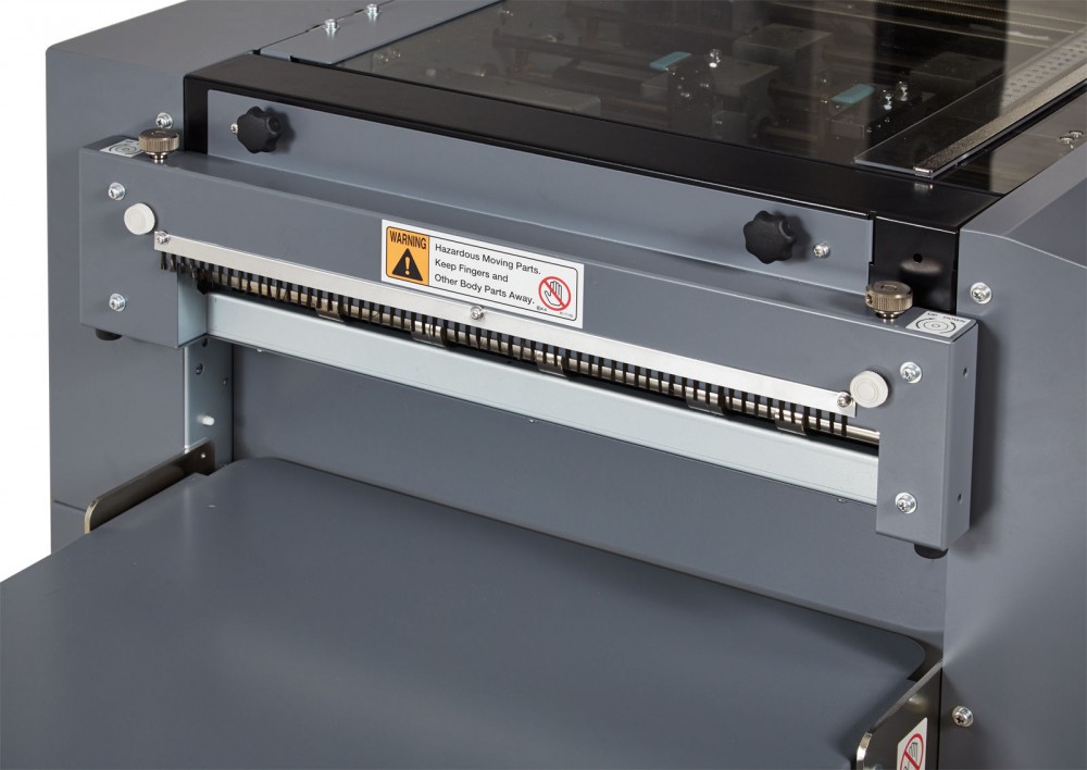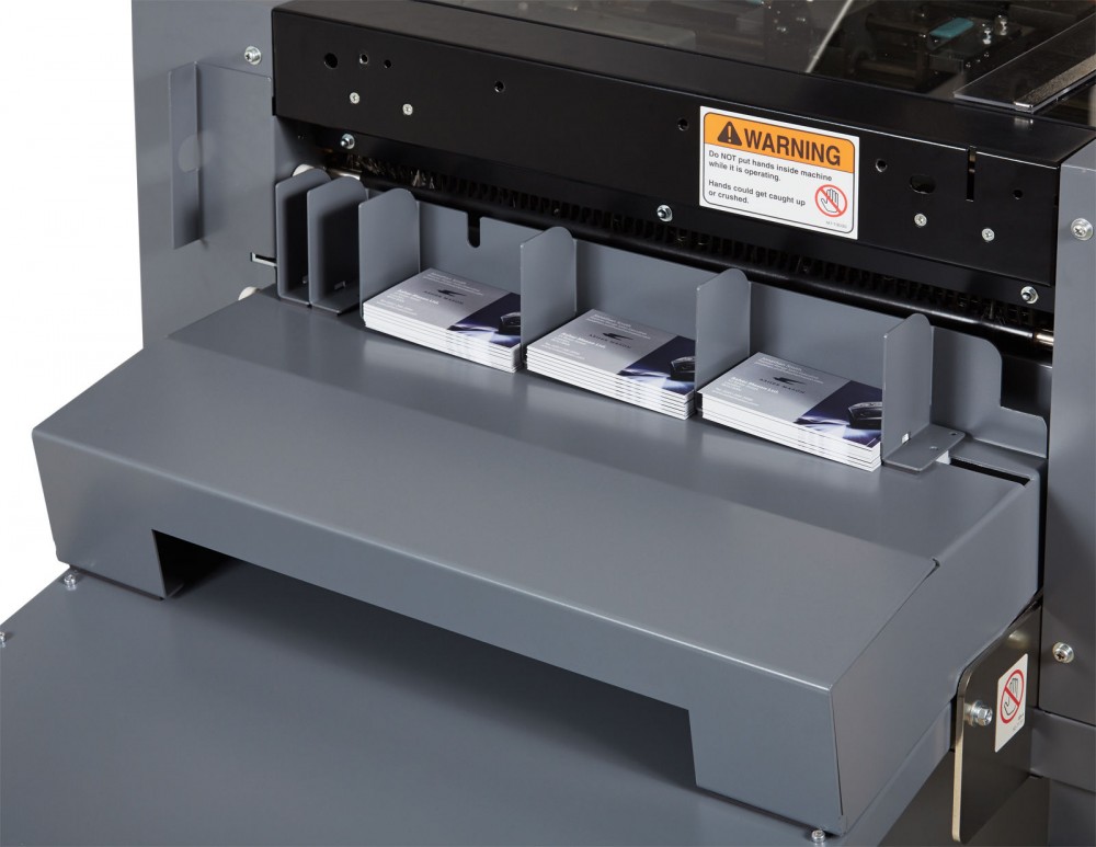 Designed to remove printed borders and prevent toner cracking on digital colour documents, this compact all in one finisher can process up to 6 slits, 25 cuts, 20 creases and 2 perforations in a single pass – bringing efficiency and automation to print finishing. Offering fully automatic setup and quick changeovers, the DC-616 can finish a wide array of full bleed digital applications including greeting cards, invitations, brochures, book covers, photos, and business cards normally only possible by using multiple, separate finishing devices.