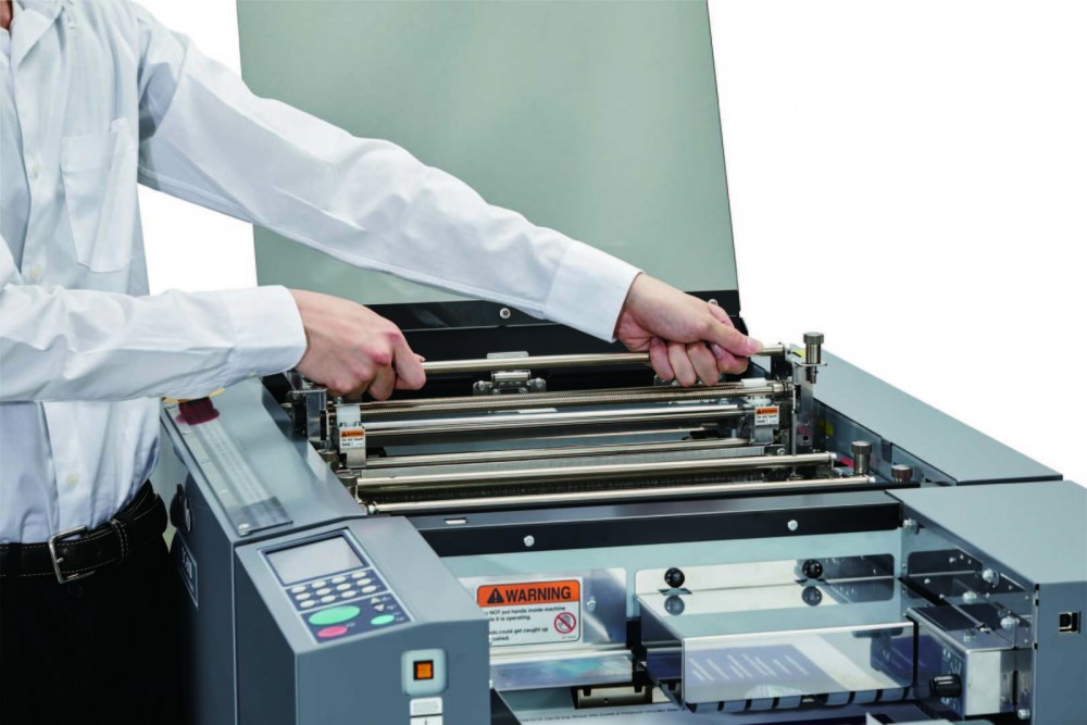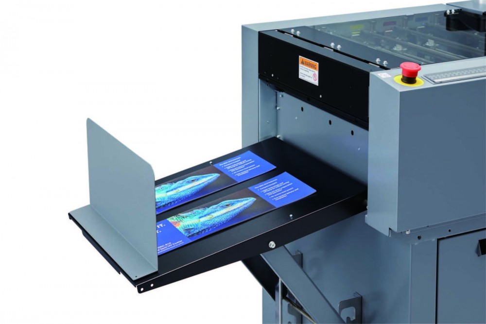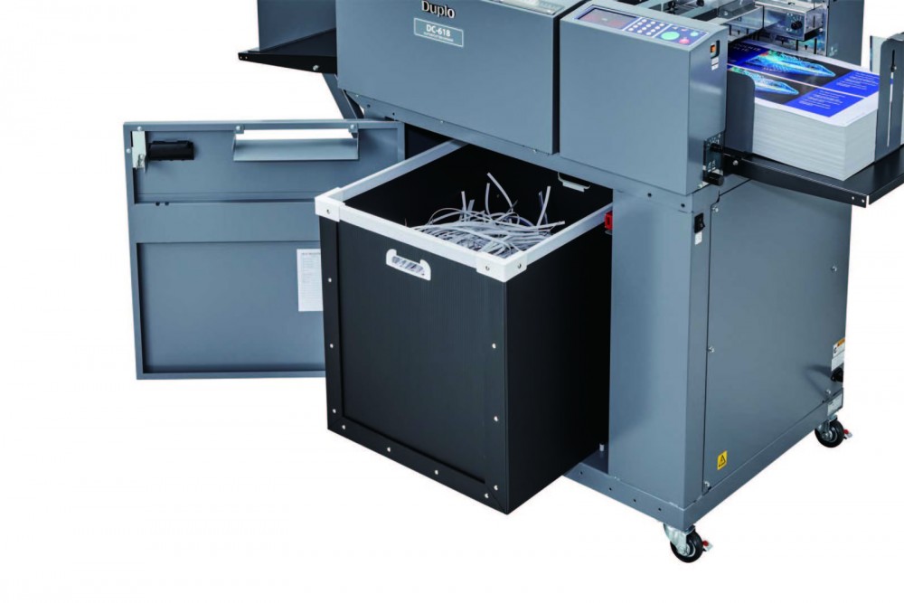 The fully automated DC-618 Slitter/Cutter/Creaser is Duplo’s compact yet powerful all-in-one finishing solution designed for today’s digital printer. With the ability to process up to 6 slits, 30 cuts and 20 creases in one pass, the DC-618 delivers full-bleed applications up to 23 sheets per minute without the white borders and toner cracking for a clean finish. Produce an array of on demand applications with ease including 24-up business cards, gate-fold invitations, direct mailers, brochures, book covers, and so much more. Bring your finishing in-house! The use of a rotary paper perforating tool that can be engaged and dis-engaged provides an effective card and paper perforator for start and stop perforating both across the sheet and along the sheet length. This perforating is setup in the new Duplo DC 618 job creator program enabling the Duplo DC 618 to be a fully automated perforating machine.