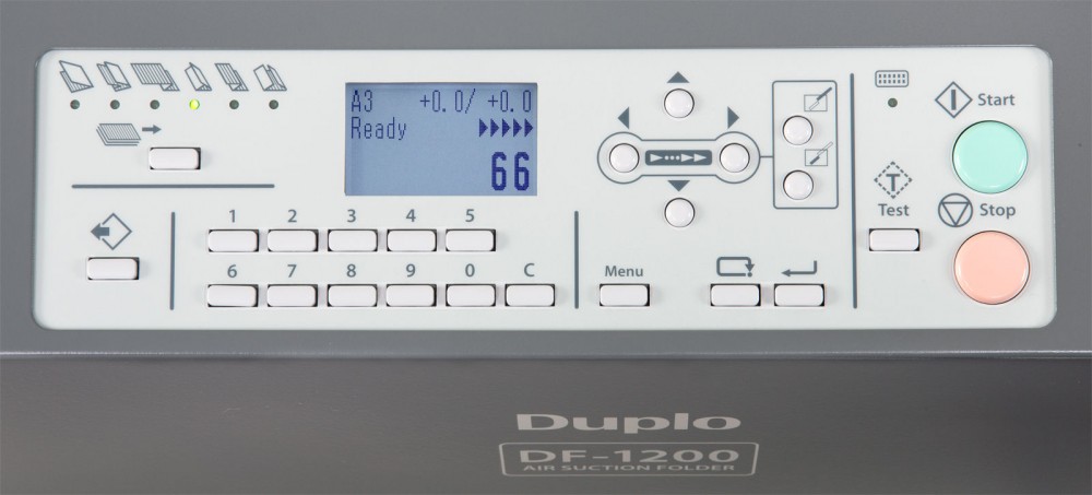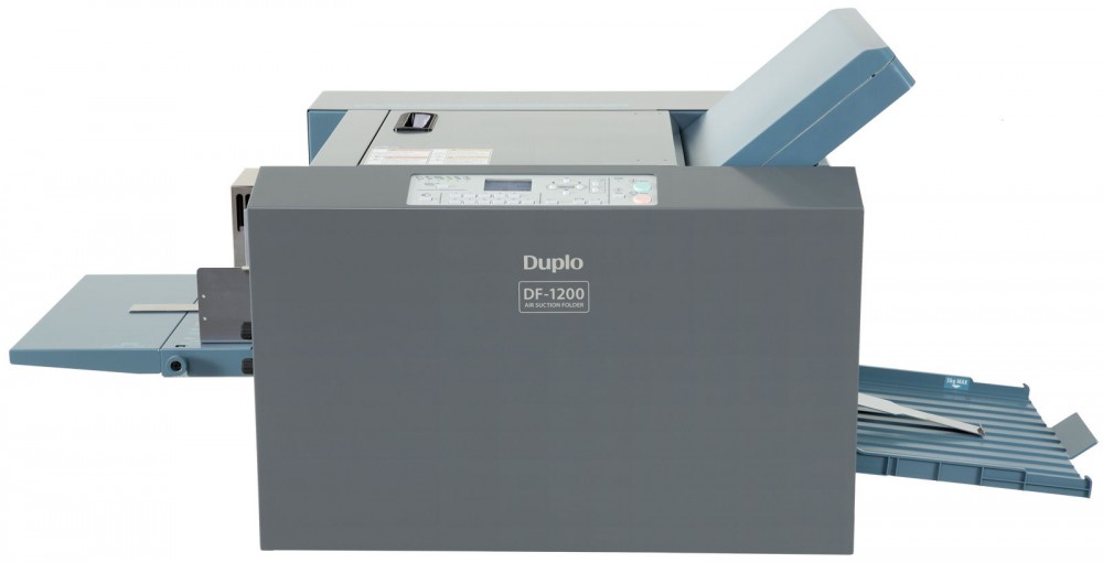 The Duplo DF-1200 Air Suction Paper Folder provides the perfect tabletop solution for folding offset and digitally printed documents. With a production speed of up to 260 sheets per minute, the DF-1200 utilizes Duplo's renowned suction feed technology to handle static build-up in digital print applications and also comes equipped with Optical Double Feed Detection to ensure personalized jobs are folded one sheet at a time. Fully automated and quiet in operation, the DF-1200 is ideal for any office environment.
