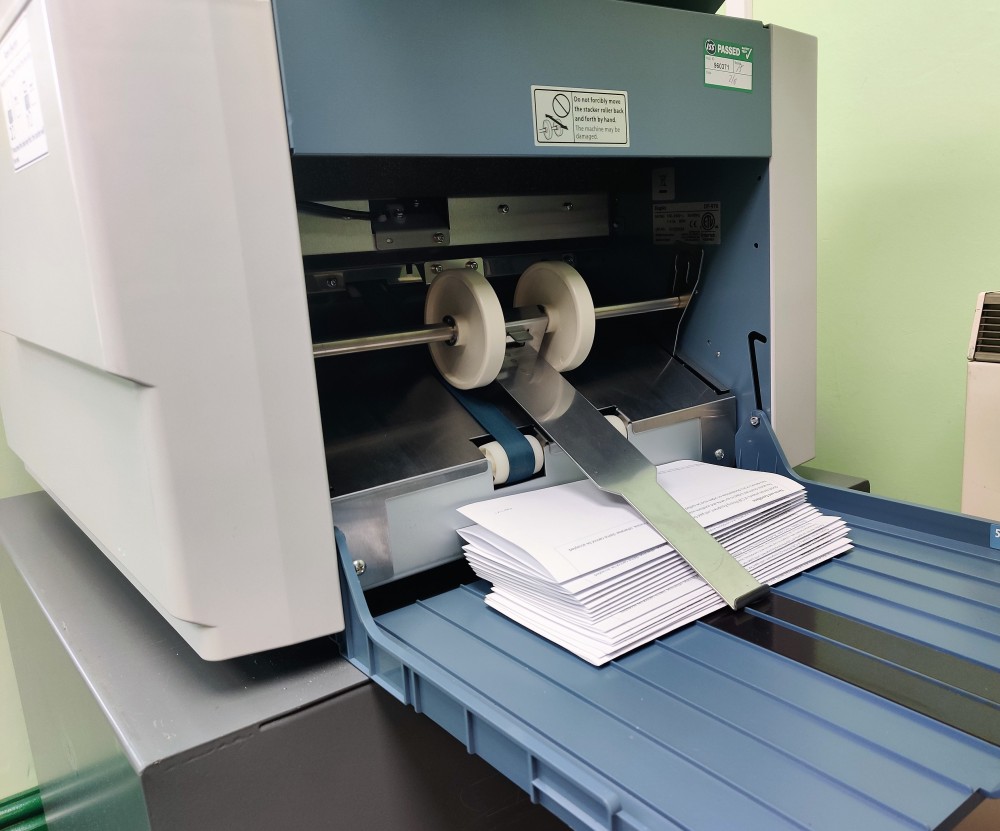 The DF-970 is a simple to use desktop folder suited to handling simple folded products in a no fuss way. It is equipped with 6 standard folds and a custom fold. It can handle a variety of sheet sizes and operates at a very low sound level. The DF-970 is equipped with a simple to use control panel, automatic plate setting and 10 memories which enhances the operators’ experience.
