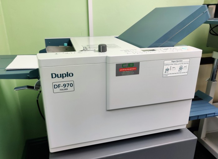 The DF970, along with the DF-980 are the fastest and quietest table top paper folding machines in the market today, with a top speed of 260 sheets per minute. Equipped with the features such as automatic plate setting, easy to use control panel, job memories, 6 built in custom fold and capability to finish a wider range of sheet sizes.