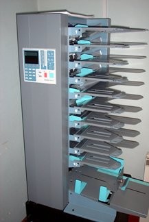 The Duplo DFC-10 is a high spec 10-station friction collator with the ability to work standalone or as part of a collating/bookletmaking system. It is also able to connect to another DFC-10 tower yielding a 20-station collating system or with Duplo's DBM-120 bookletmaker to create 80-page booklets.