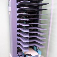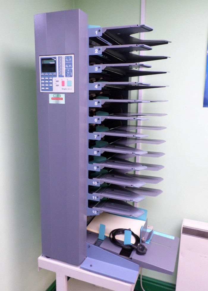 The Duplo DFC-12 is a high spec 12-station friction collator with the ability to work standalone or as part of an collating/bookletmaking system. It is also able to connect to another DFC-12 tower yielding a 24-station collating system or with Duplo's DBM-120 bookletmaker to create 80-page booklets.