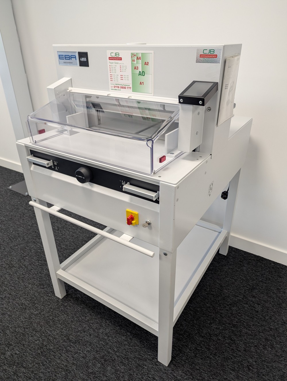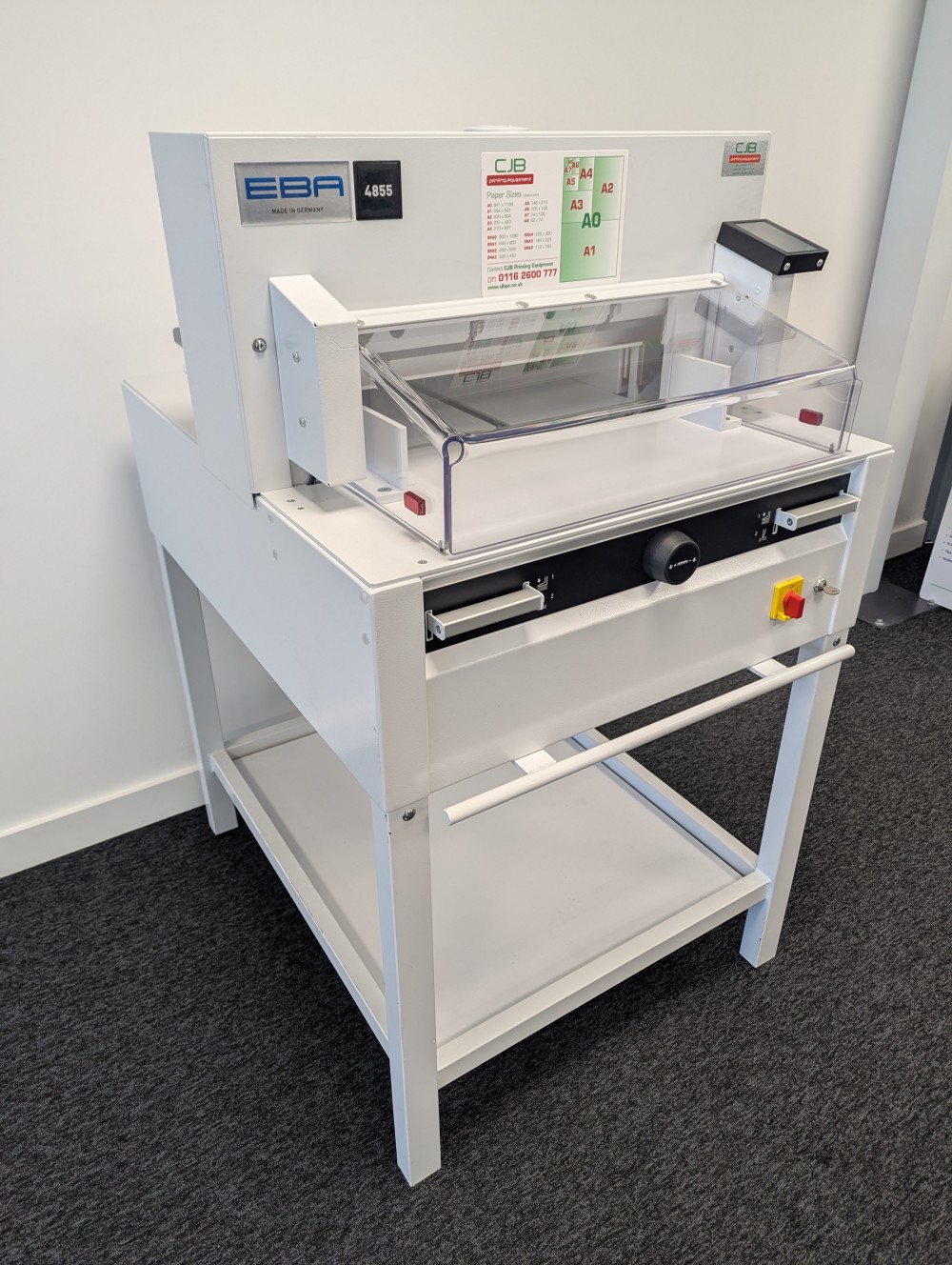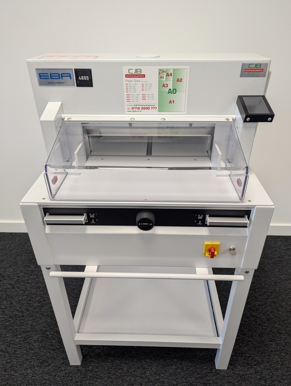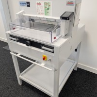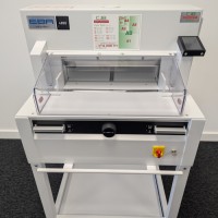 The 4855 is a feature rich and highly productive small format guillotine that is packed with professional features. The 4855 guillotine is highly accurate with both an optical cut line indicator, electronically controlled back gauge with fine adjustments possible using the infinitely variable back gauge control wheel. Safety is assured thanks to the 2 handed operation and Perspex safety guard.