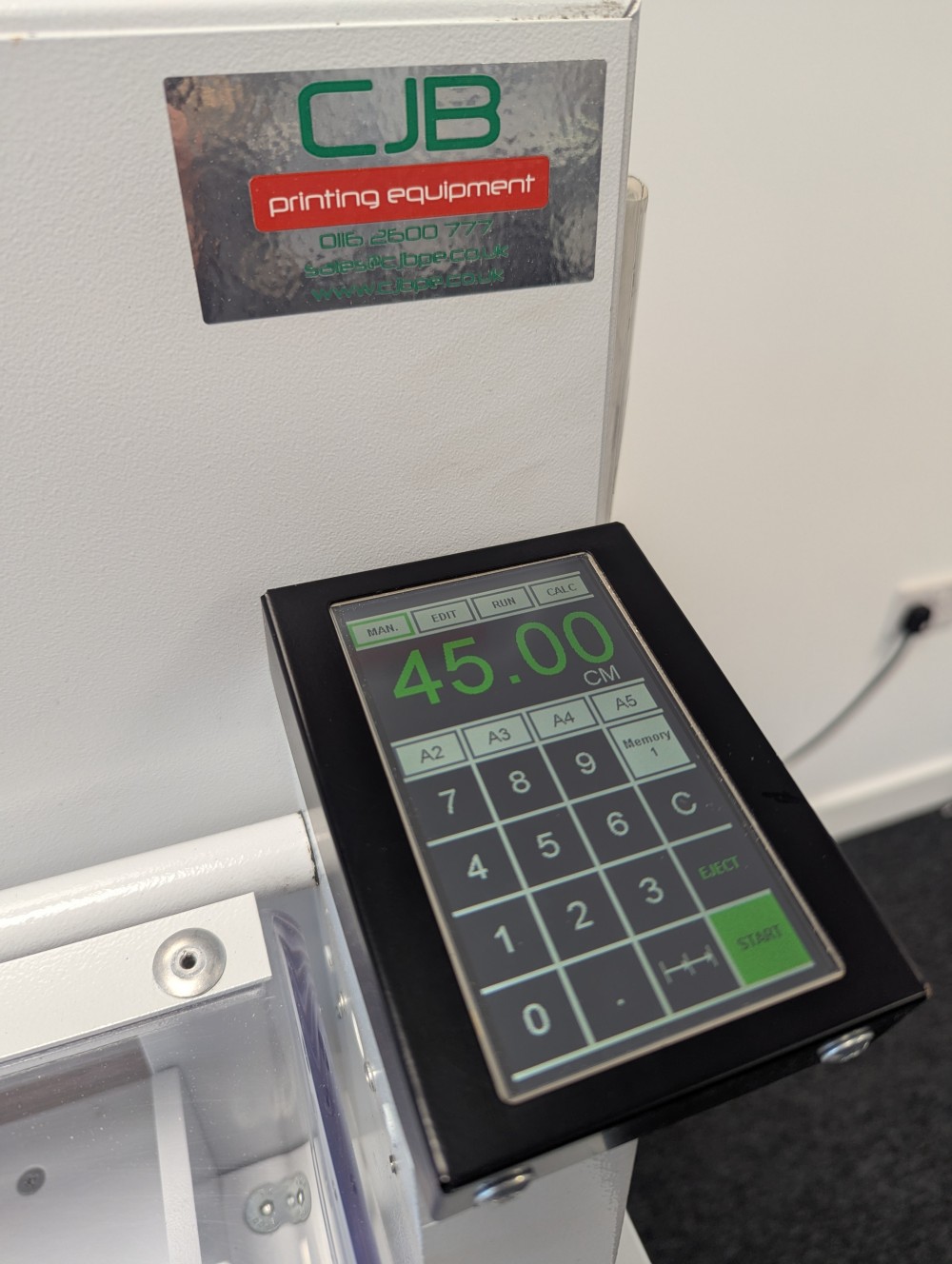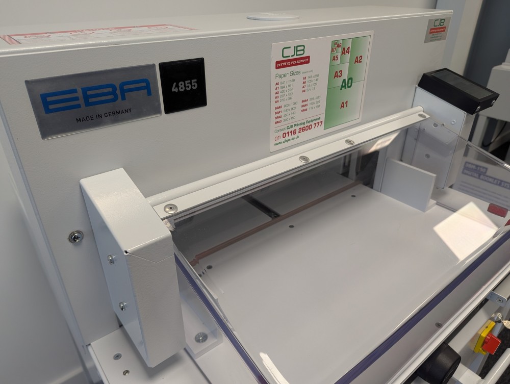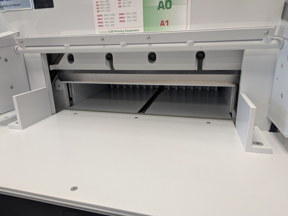 The 4855 is a feature rich and highly productive small format guillotine that is packed with professional features. The 4855 guillotine is highly accurate with both an optical cut line indicator, electronically controlled back gauge with fine adjustments possible using the infinitely variable back gauge control wheel. Safety is assured thanks to the 2 handed operation and Perspex safety guard.