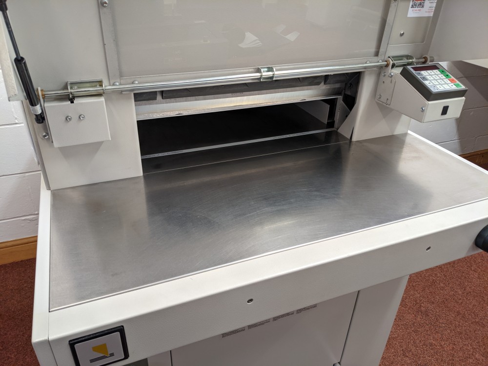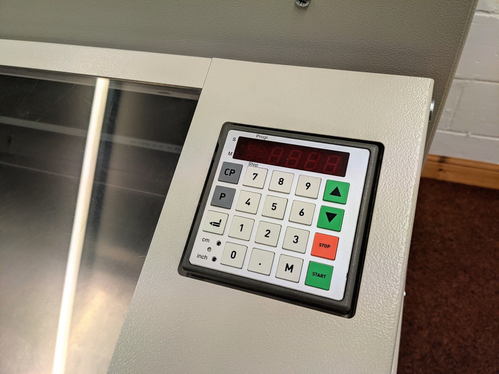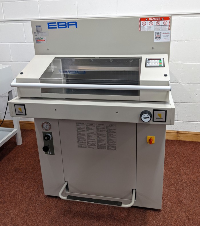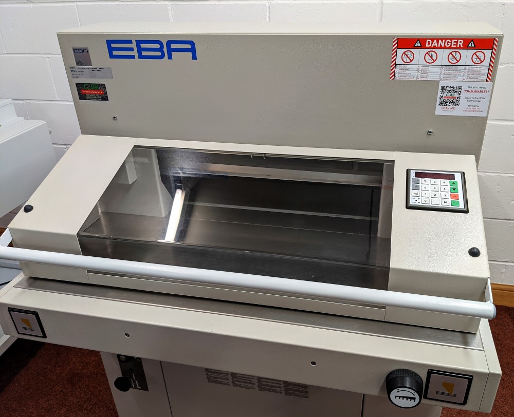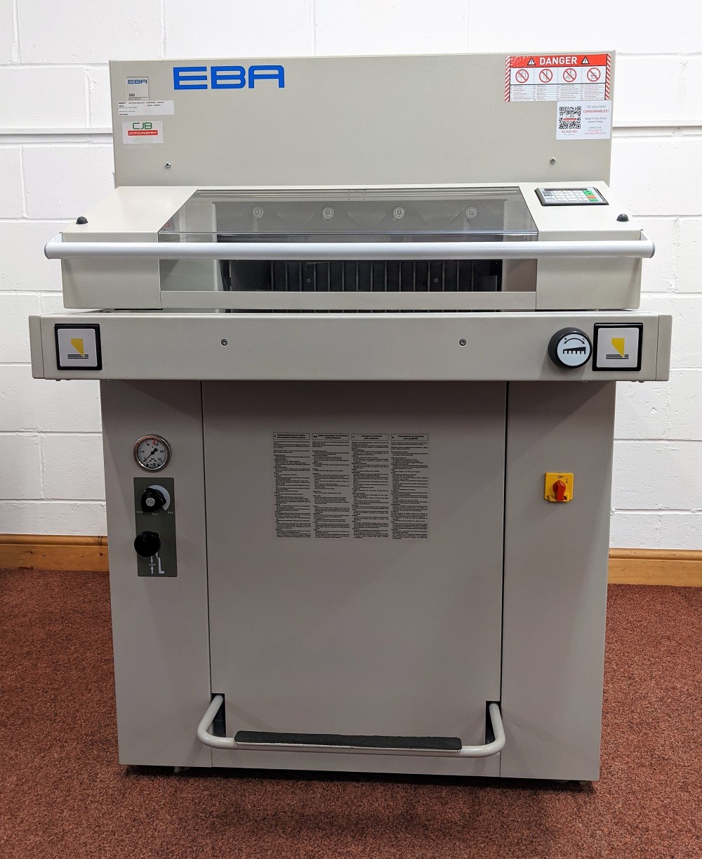 The EBA 550 Guillotine offers high cutting performance which is easy and safe to operate with keypad programming. Hydraulic precision drive for blade and clamping, guarded front table area, an electronic hand wheel for fine adjustment of the back fence.