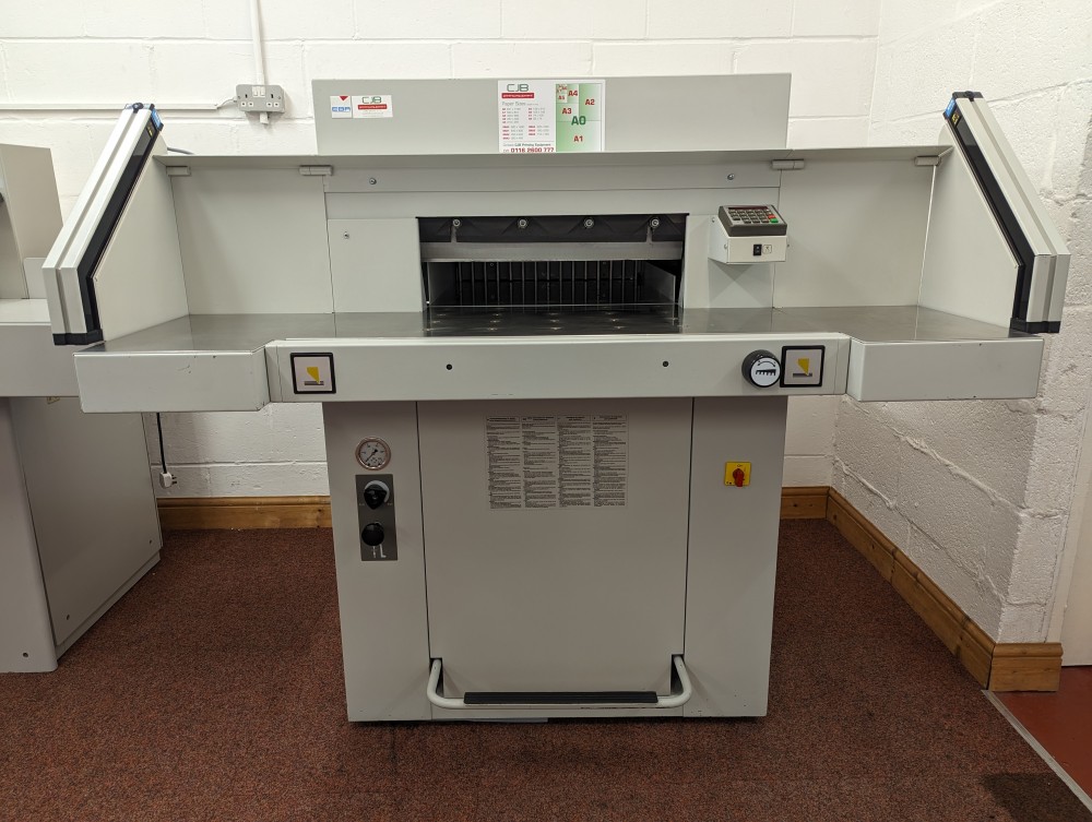 The EBA 551 employs the latest technology to provide a fully configured commercial print guillotine for the B3 and digital print market. The guillotine includes a hydraulic clamp drive to enable fine control over the holding of the stack to be cut without damaging the print work. A foot pedal provides preclamping. It adds up to a highly versatile machine able to cope with a wide range of print work and material types.
