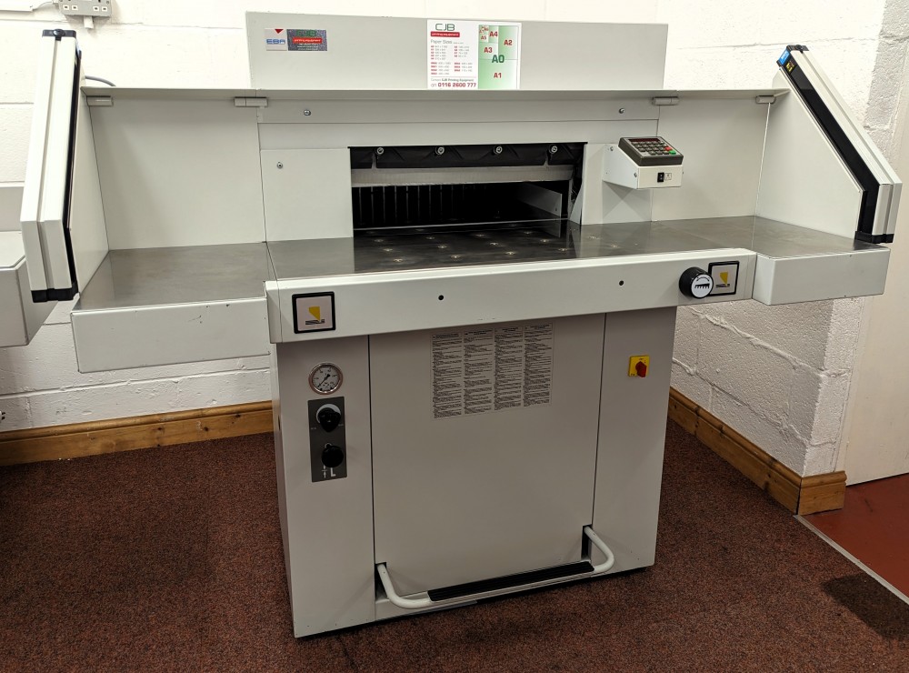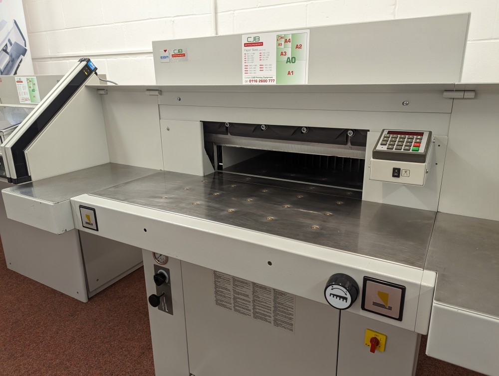 The EBA 551 is a highly flexible guillotine able to take on all types of work thanks to hydraulic clamping system more normally associated with larger guillotines. Productivity is enhanced through programming of up to 9 jobs; Eject function to push paper forwards; side tables to hold the stack before and after cutting. Diagnostic display shows error messages to help pinpoint faults that need attention.