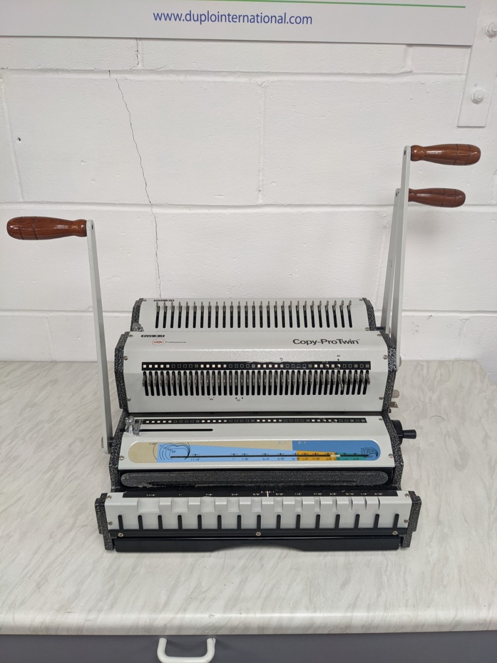 Binding doesn't get any simpler! The GBC Copy-Pro Twin is a professional and heavy-duty wire punch and bind machine, distinctive because it has been designed with both 2:1 and 3:1 punch mechanisms built in. The Copy-Pro Twin is made up of premium quality components to guarantee you an effortless and professional bind, as well as many years of trouble-free service. Separated punching function for 2:1 and 3:1 pitch Square holes Manual punch 2:1 pitch with 28 adjustable pins 3:1 pitch with 40 adjustable pins Length 14" (35.5cm) with open ends All made of sturdy metal For letter, legal paper and covers Integrated wire gauge and wire holder