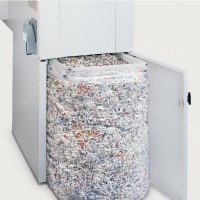 High volumes of shredding can be handled with ease by the IDEAL 4108 CC. Inside is a high capacity 300-litre disposable bag for shredded material, and the feeding table and conveyor keep paper running through without jams. It is easy to use and built to last, with specially hardened steel cutting shafts and centralised oil lubrication of the shredding head to ensure smoother operation.