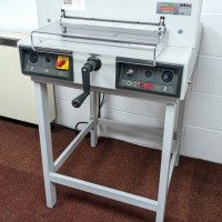 Electric powered guillotine takes the strain out of cutting paper for low volume users, yet host of features including digital readout of back gauge positioning deliver accurate cutting performance. All metal construction with hardened steel blade guides delivers reliable performance. Safety features designed to make accidents impossible.