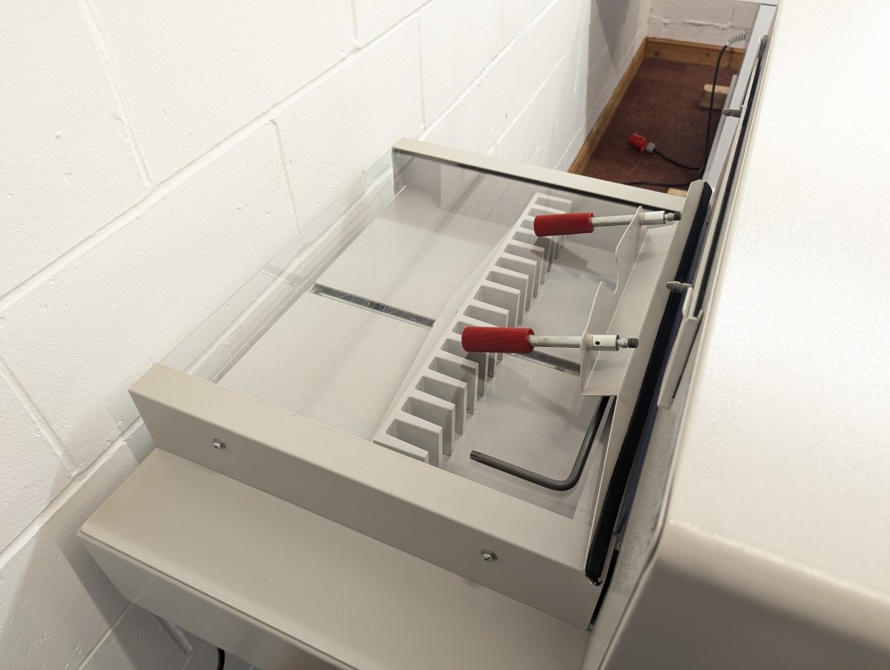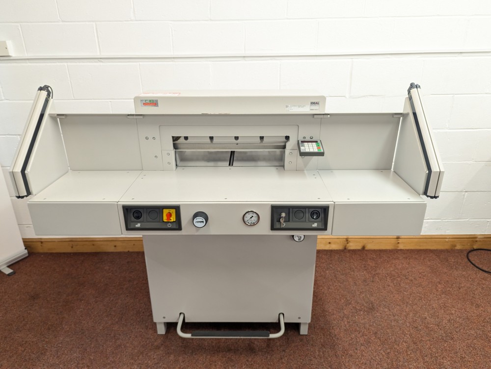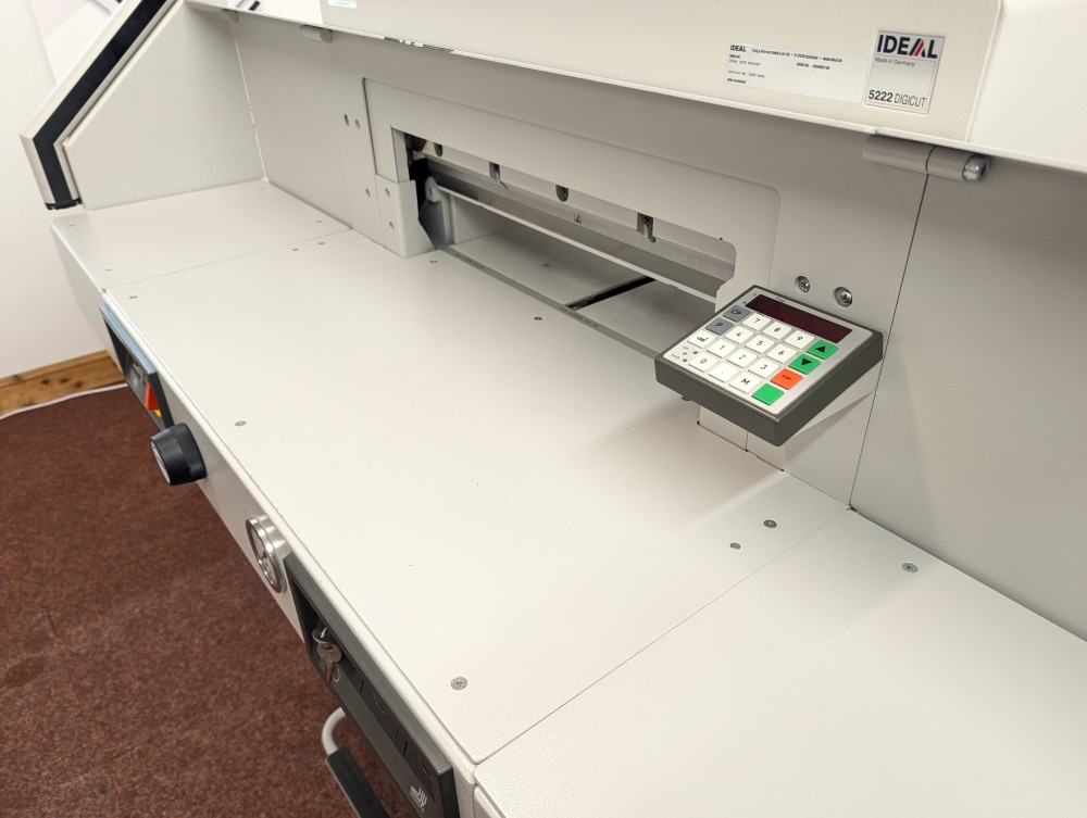 The IDEAL 5222 Digicut is a highly flexible guillotine able to take on all types of work thanks to hydraulic clamping system more normally associated with larger guillotines. Productivity is enhanced through programming of up to 99 jobs; Eject function to push paper forwards; side tables to hold the stack before and after cutting. Diagnostic display shows error messages to help pinpoint faults that need attention.