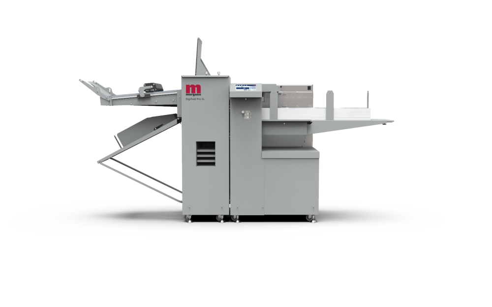 The DigiFold Pro XL is the latest addition to the Morgana DigiFold family. Developed on the well proven Morgana DigiFold Pro, built with our unique, open design, suction feeder that handles stock sizes from 210 – 1300mm in length. This heavy-duty automatic creasing and folding system is designed to complement mid to high volume digital and offset production presses.