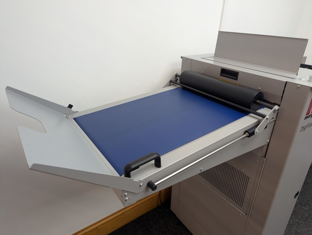 The DigiFold Pro is an automatic creasing / folding machine designed specifically for the professional digital or litho printer who has a need to crease and fold digitally printed, heavy weight or cross grained stock.