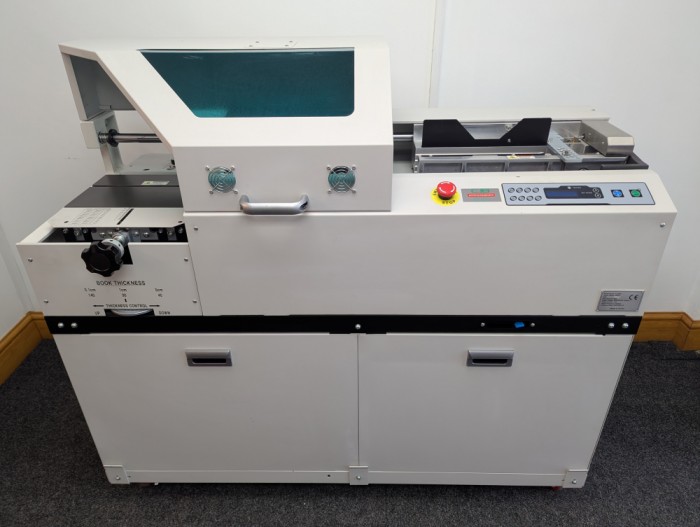 The Morgana Binder is amongst the simplest and fastest short run binding systems on the market. The unique spine preparation with a new powerful slitting and sheet fanning device allows the glue to penetrate for maximum adhesion. An integral dust extractor with bag comes as standard. The binding method can be selected for padding or cover binding.