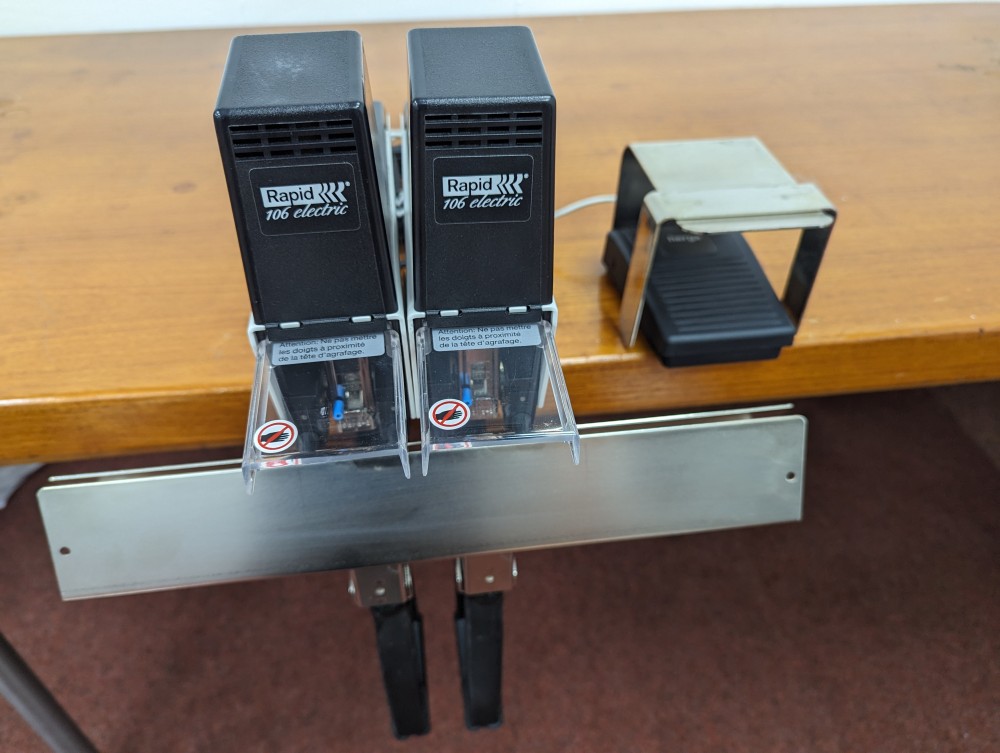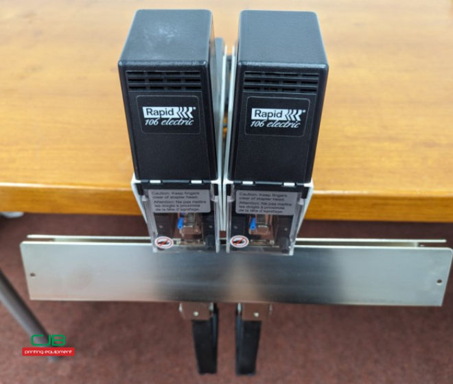 The Rapid 106 can handle flat, saddle (for booklets) and loop stapling. Two or more staplers can be connected in series, implying that several stapling operations can be carried out simultaneously.