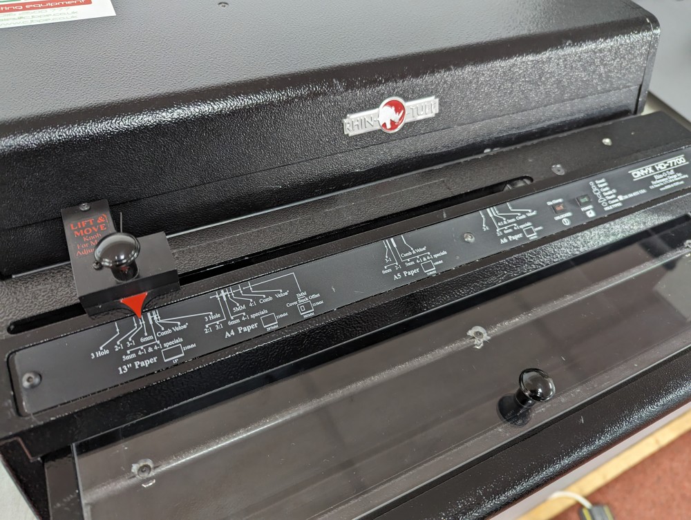 The Accu-Set paper stop sets up all hole placements easily & accurately, even on odd sized paper. With a new diagnostic display lights which gives indications of important machine conditions.