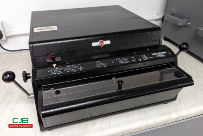 The HD7700 has more than 20 interchangeable dies available with 12 standard hole patterns. (Each die is priced separately). Comb, Wire Loop, Plastic Coil, Velo Bind™ GBC, 3 Hole Loose Leaf