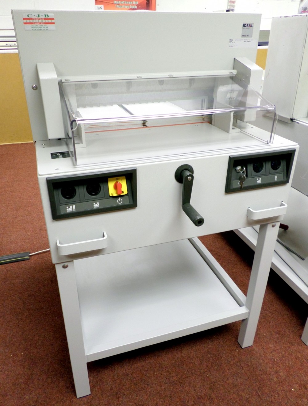 Richard contacted CJB about Ideal Guillotines because of a recommendation from a service company. Kall Kwik was moving premises and wanted a newer/better guillotine than what they had a present. CJB offered both new and refurbished equipment as well as delivery, warranty and installation. The deal for a new Ideal 4850-95EP Guillotine also included a part exchange of a Morgana FRN numbering machine which was no longer a requirement for them. Overall Kall Kwik were "very happy" and pleased at the "very good service" CJB offered.