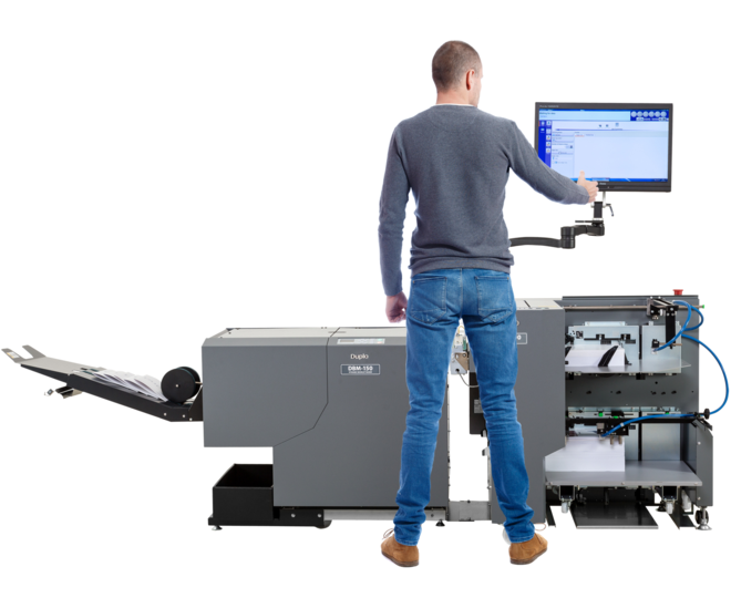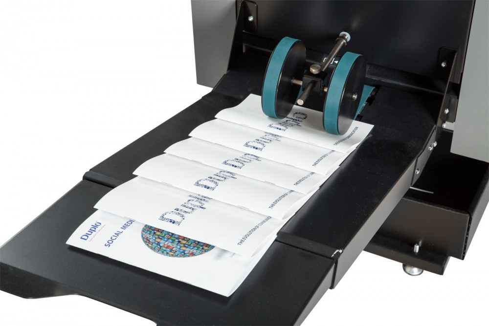 The 150 Digital System is an extremely compact, modular system combining sheet feeder, bookletmaker and trimmer. It provides features such as job integrity (for confidence that production is correct), fast operation and two feed trays (to allow the merging of differently finished stocks). Being a modular system, Duplo has a range of alternative feeding and finishing devices that provide the business owner with the opportunity to upgrade or change devices as needs change and business develops.