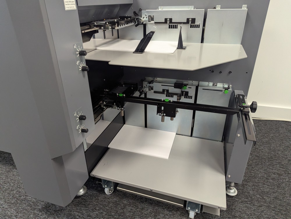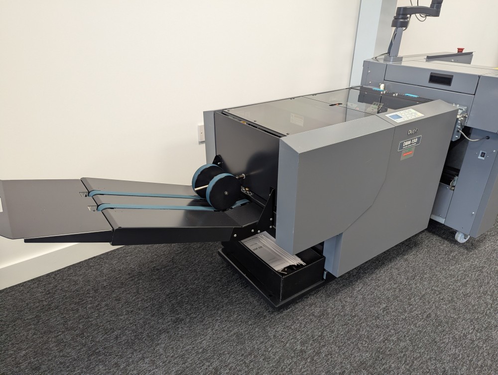The 150 Digital System is an extremely compact, modular system combining sheet feeder, bookletmaker and trimmer. It provides features such as job integrity (for confidence that production is correct), fast operation and two feed trays (to allow the merging of differently finished stocks). Being a modular system, Duplo has a range of alternative feeding and finishing devices that provide the business owner with the opportunity to upgrade or change devices as needs change and business develops.