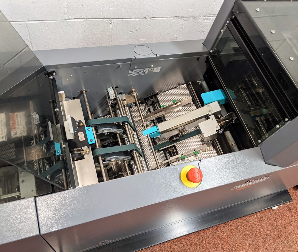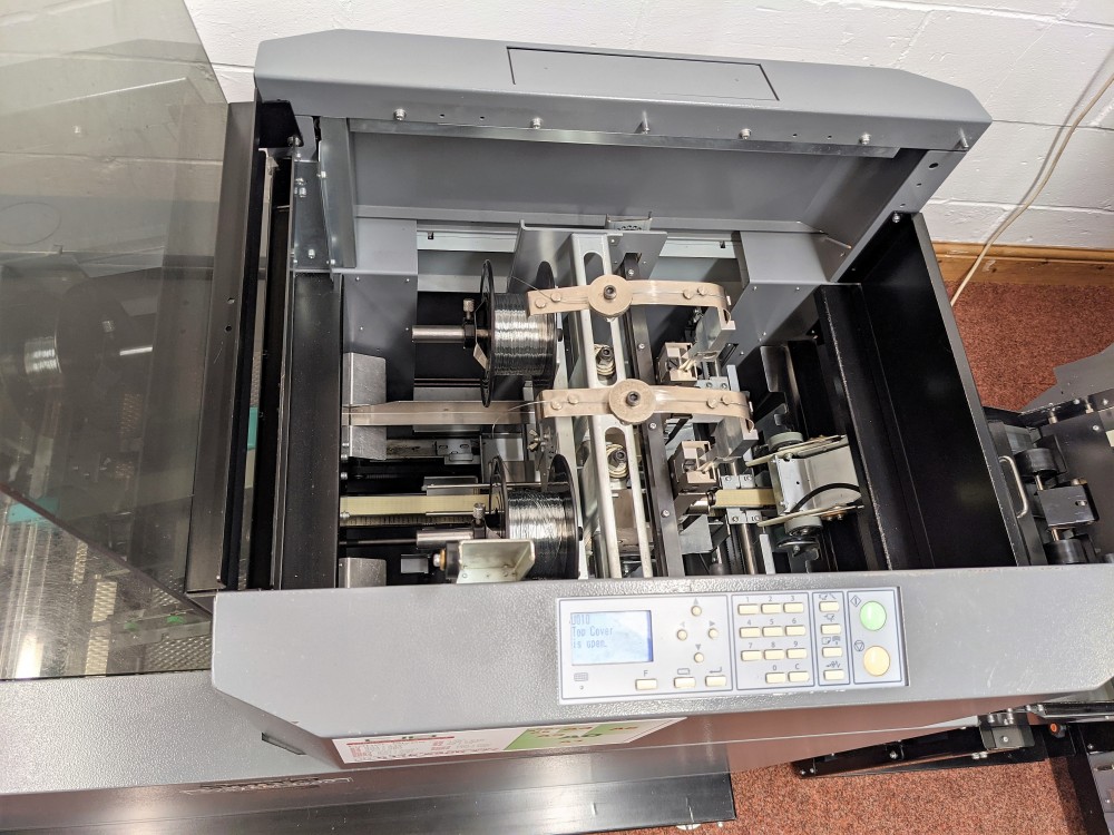 The 350 Booklet System is ideal for high production, high quality booklet making. The Deluxe stitching heads reduce the cost per booklet considerably due to the yield of stitches per wire spool, around 50,000 booklets per spool is achievable.
