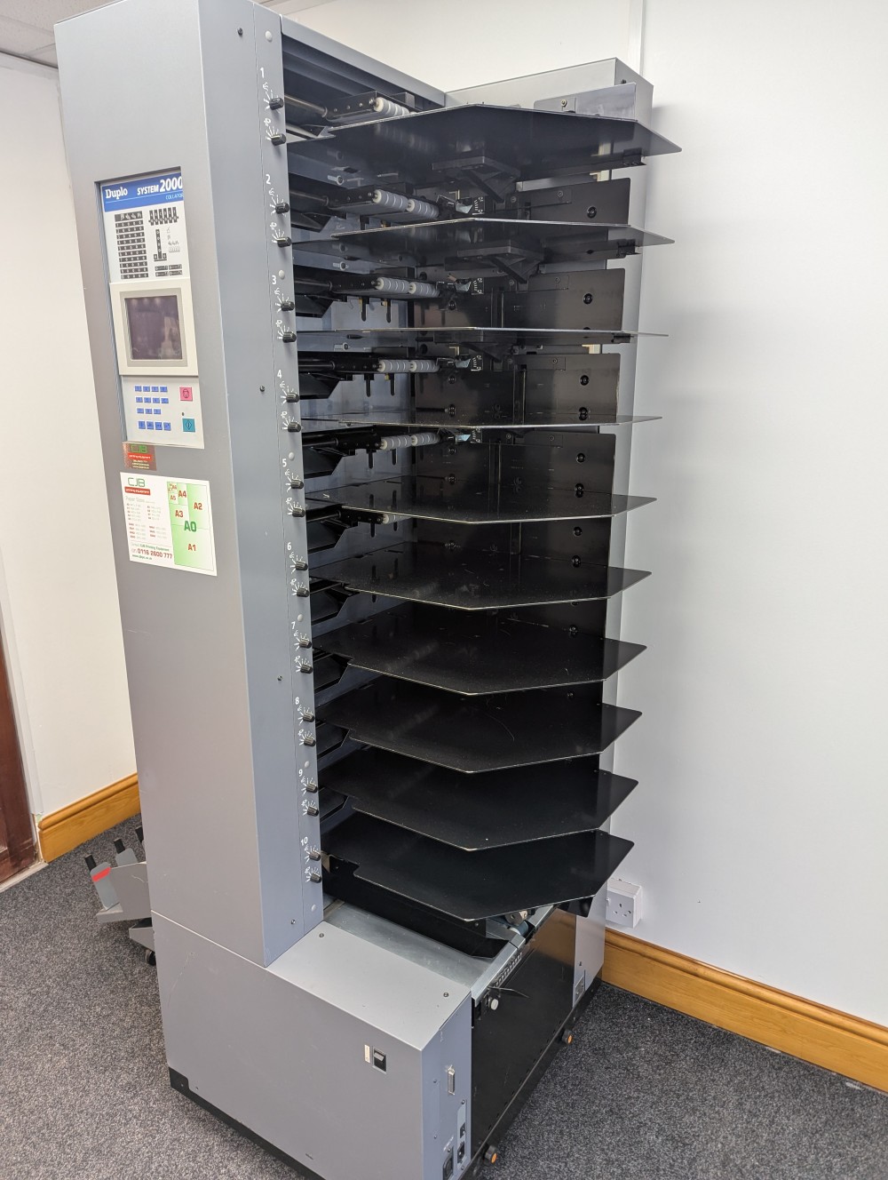 The DC-10/60 is a high performance suction feed vertical collator, ideal for the demands of the short run, fast turnaround print market. Deep capacity bins, a wide range of material options and reliable performance add up to a versatile and flexible tool either as a standalone collator or fitted to a Duplo bookletmaking system to deliver a wide range of finished products. As a standalone machine the DC-10/60 is ideal for gathering sheets into collated blocks for different styles of binding. The DC-10/60 handles a wide range of stock, including both litho and digitally printed sheets.