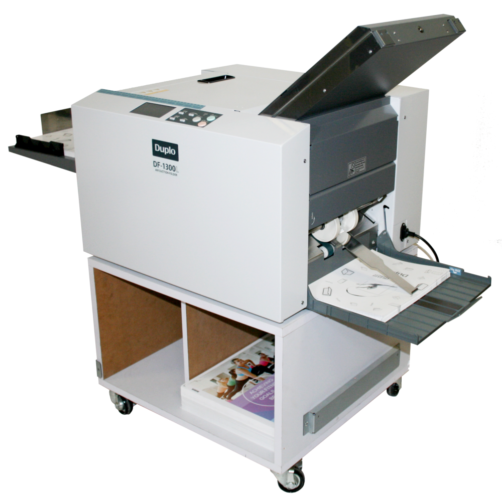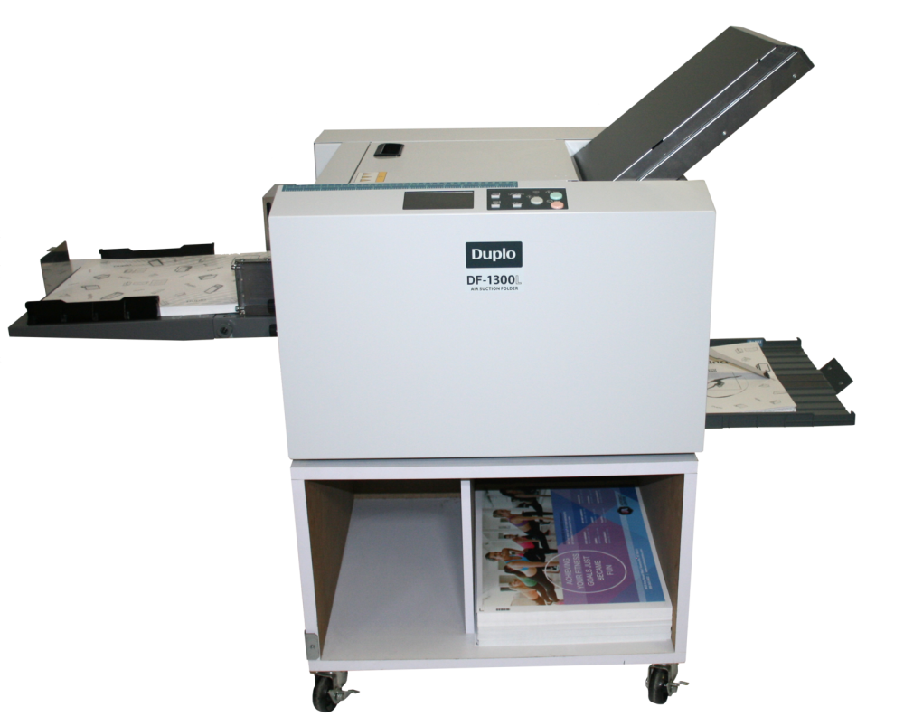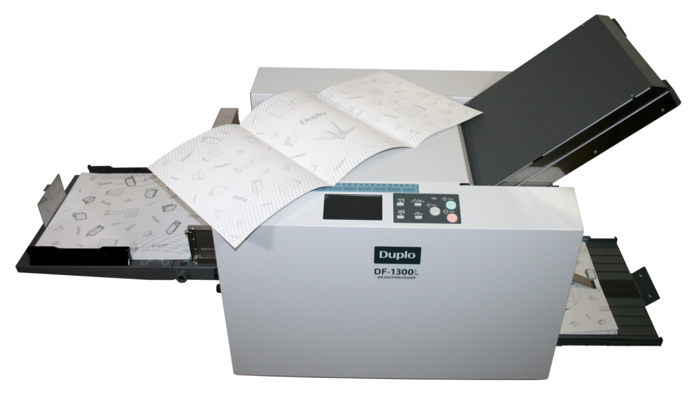 The DF-1300L is positioned between Duplo’s friction feed paper folders for the office market, and SRA3 format suction folders commonly found in small commercial printers.