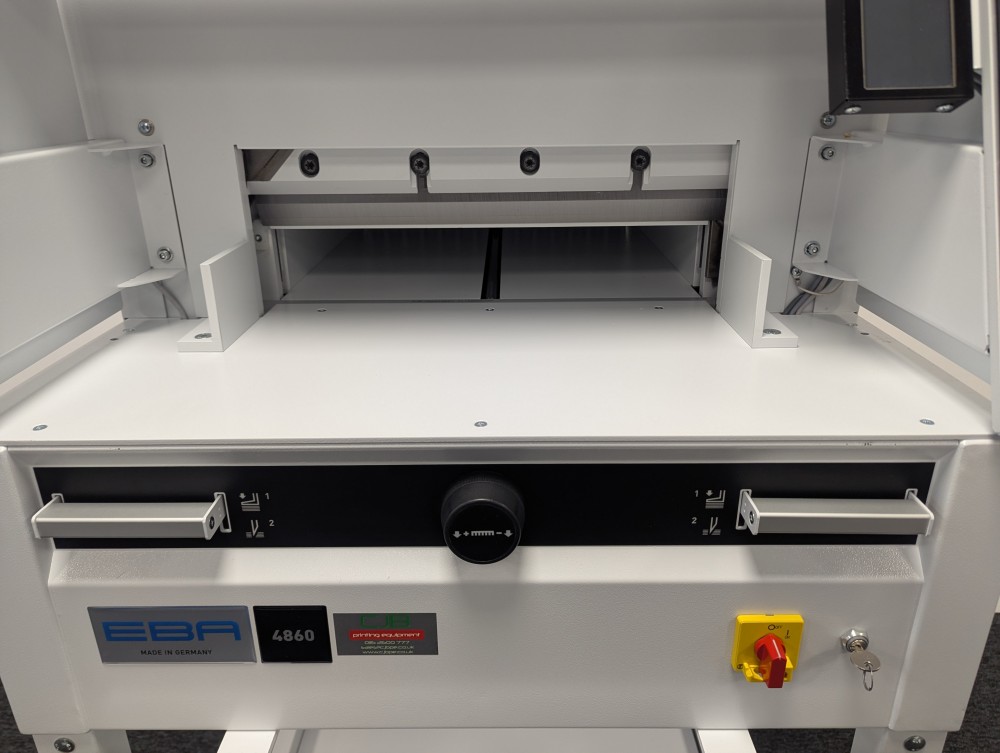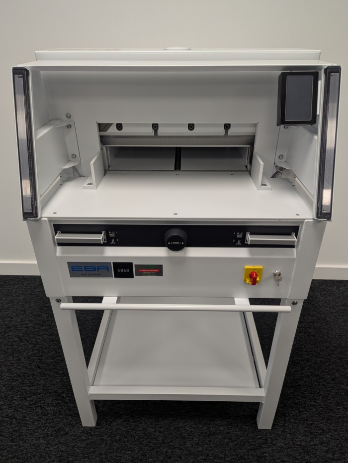 The EBA 4860 is the ideal solution for print companies looking for a productive small format guillotine packed with professional features. This guillotine is highly accurate with both an optical cut line indicator, electronically controlled backgauge and fine adjustments possible using the infinitely variable backgauge control wheel. Safety is assured thanks to the two handed operation and IR safety curtain.