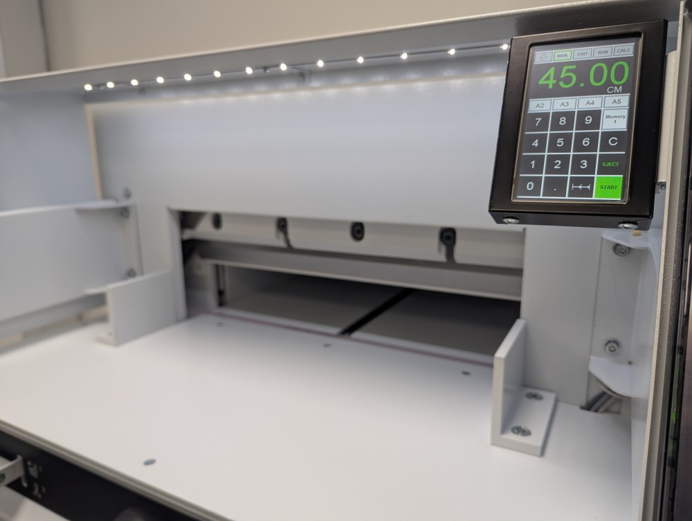 If space is a premium or your existing guillotine is slowing down production this model is just for you. The use of IR safety curtains make it approximately 20% faster than alternative models with a physical guard. As with all EBA guillotines it is made in Germany to the highest specifications and safety standards.
