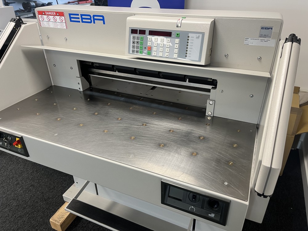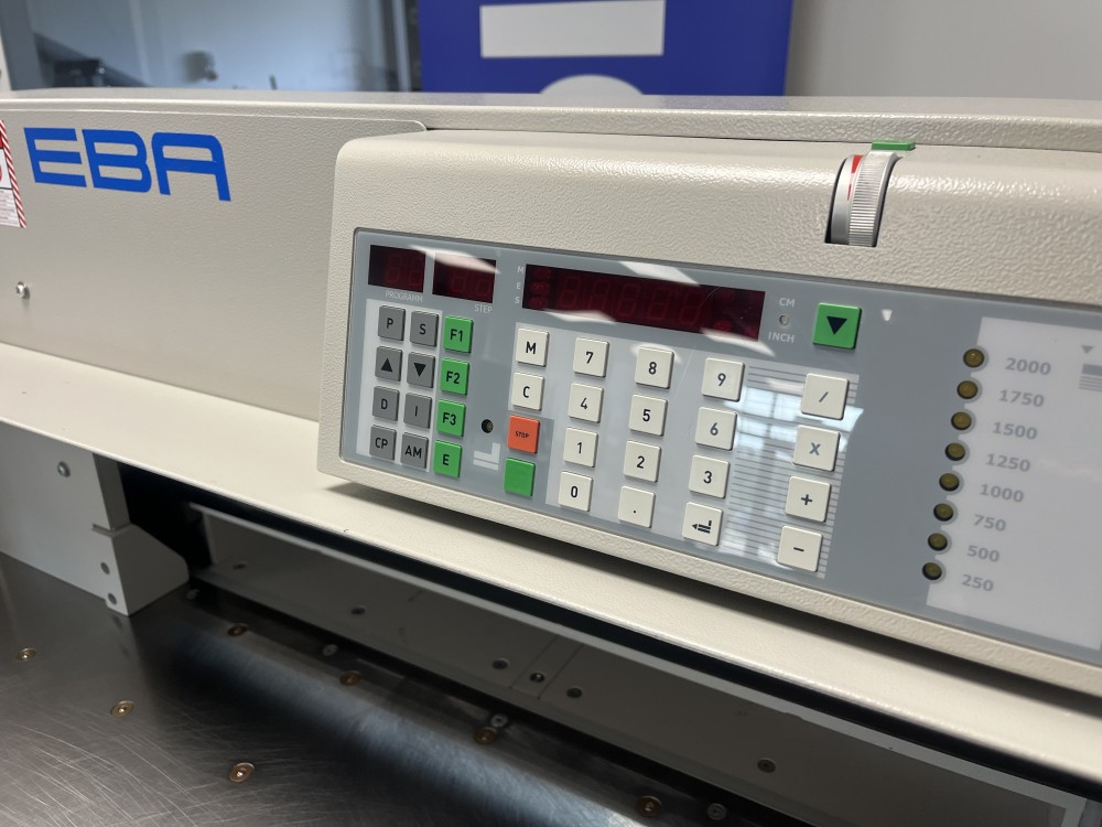 The EBA 721 LT is a fully programmable guillotine with an infra-red safety beam perfectly suited to trimming digital print jobs up to 720mm wide and features an air table on the front and rear tables as standard. The 721 LT has an electro-mechanical blade drive and hydraulic power clamping system which can be raised or lowered independently from the cutting system, plus the added advantage of a fully programmable control module for the power back-gauge which features include an accurate self-diagnostics, digital measurement display with a 10-button key pad for pre-setting of measurement, a repeat cut memory key, 99 programs with 99 steps in each program and a programmable eject function for pushing out the cut paper.