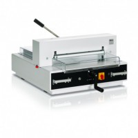 Electric powered guillotine takes the strain out of cutting paper for low volume users, yet host of features including digital readout of back gauge positioning deliver accurate cutting performance. All metal construction with hardened steel blade guides delivers reliable performance. Safety features designed to make accidents impossible.