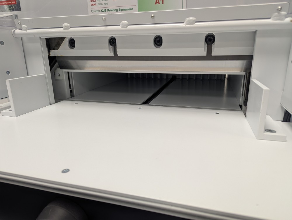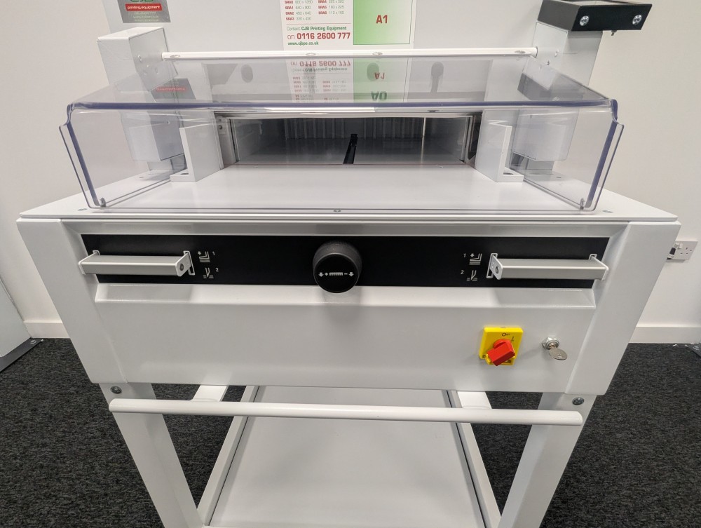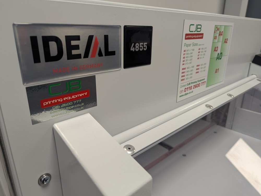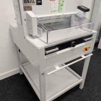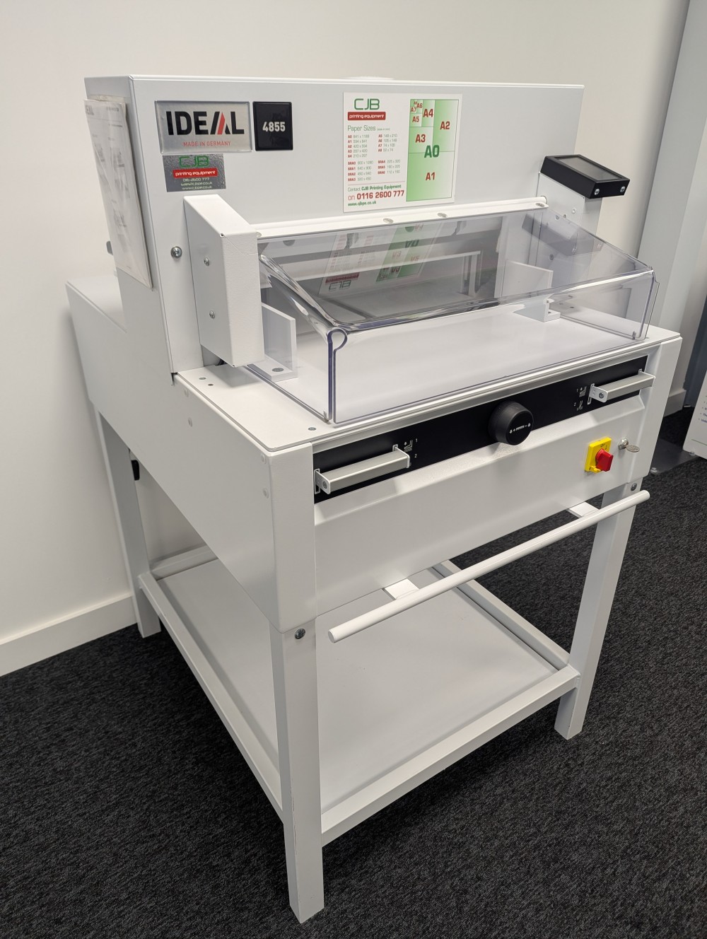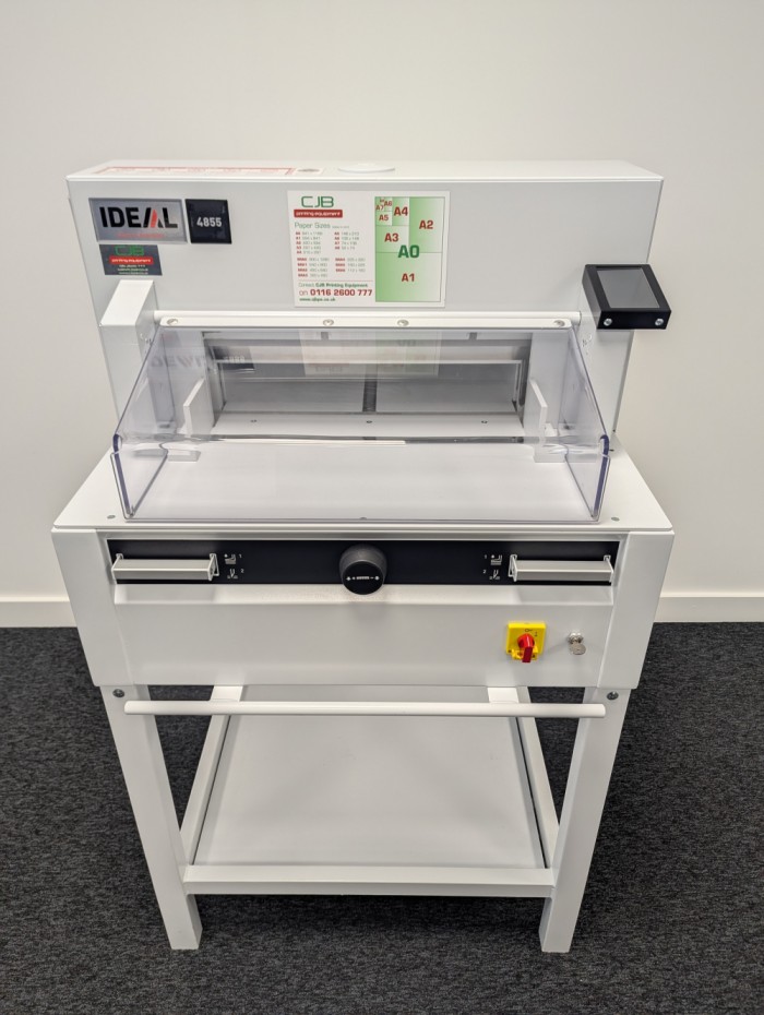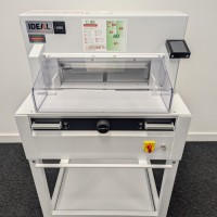 The Ideal 4855 is a feature rich and highly productive small format guillotine that is packed with professional features. The 4855 guillotine is highly accurate with both an optical cut line indicator, electronically controlled back gauge with fine adjustments possible using the infinitely variable back gauge control wheel. Safety is assured thanks to the 2 handed operation and Perspex safety guard.