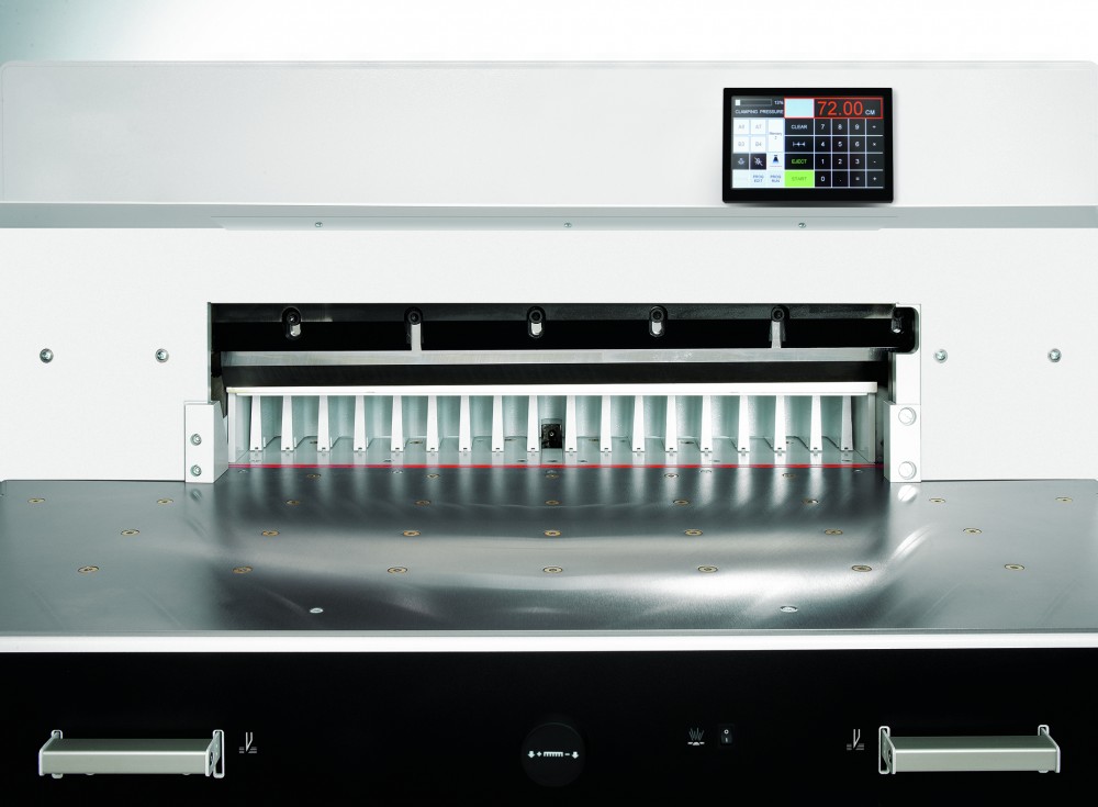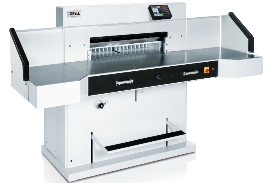 The IDEAL 7260 is a highly efficient cutting tool with programmable settings, air tables, EJECT function and preclamping mode to offer efficient and accurate operation and ensure that the guillotine is not a business bottleneck. In addition a self diagnosis system pinpoints a fault which needs attention. The IDEAL Safety Cutting System includes the latest infrared safety curtain at the front while a transparent cover protects the rear of the guillotine.