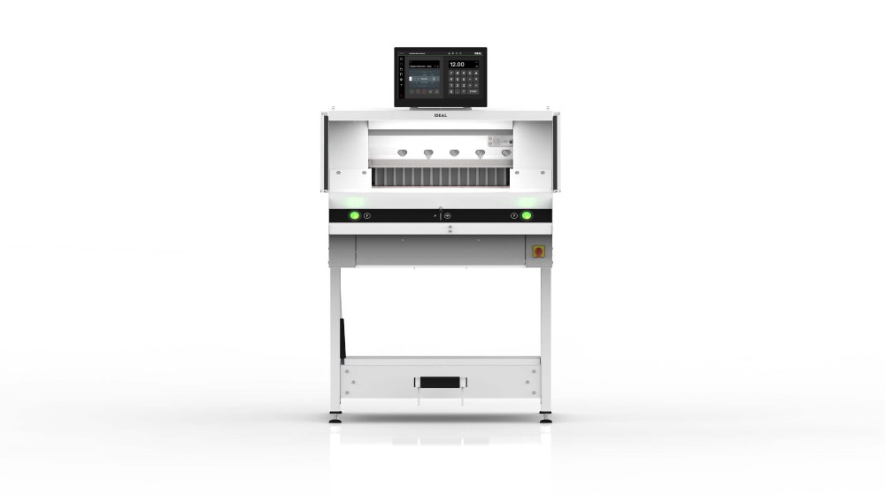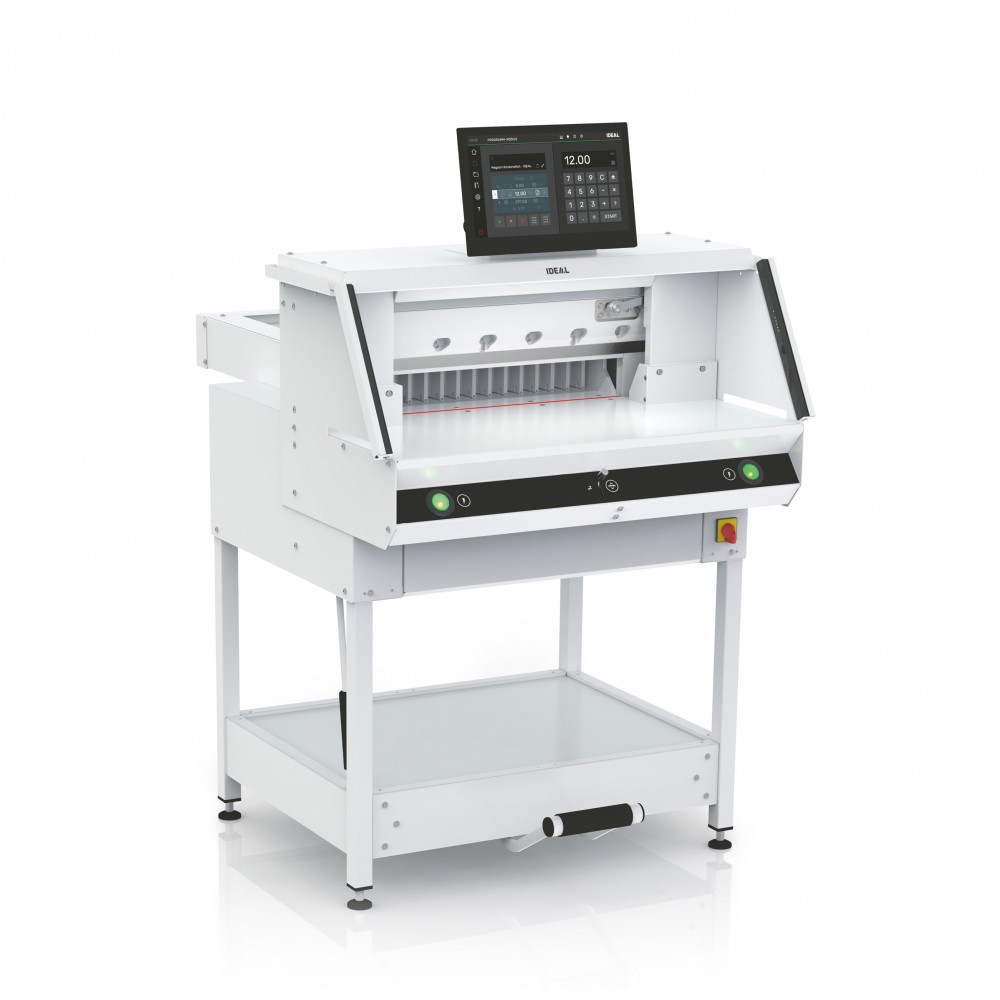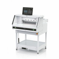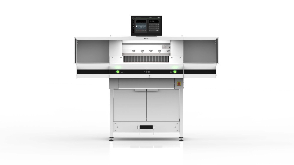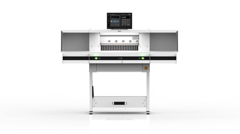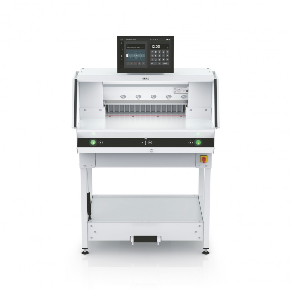 Next-generation programmable powered guillotine – for increased efficiency and productivity by working smarter. With IR light beam safety curtain and hydraulic clamp drive.