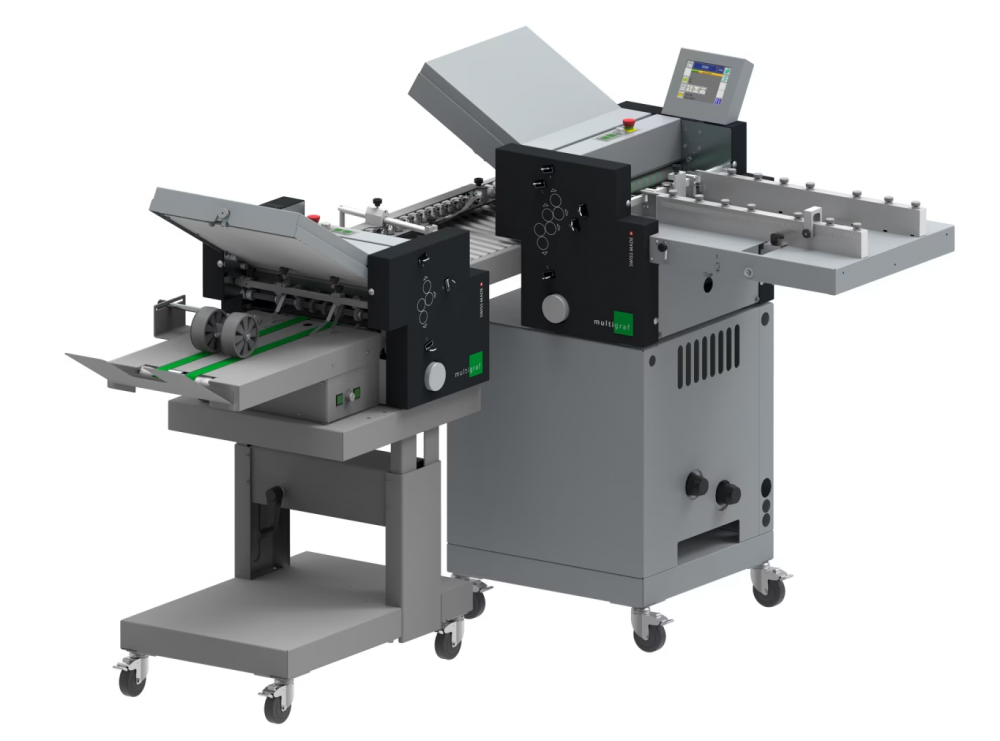 Professional A3 folding machine with two manually adjustable folding plates, suction feeder, batch counter and stream delivery.