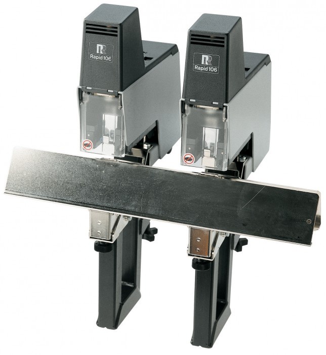 The Rapid 106 can handle flat, saddle (for booklets) and loop stapling. Two or more staplers can be connected in series, implying that several stapling operations can be carried out simultaneously. Loop stapling head is optional.