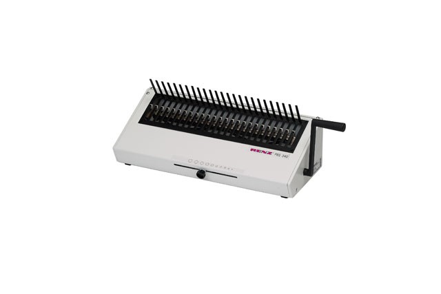 Manual binding machine for binding RENZ® plastic binding combs from ø 6 to 52 mm (1/4" - 2"), either in US pitch or in EUROP pitch.